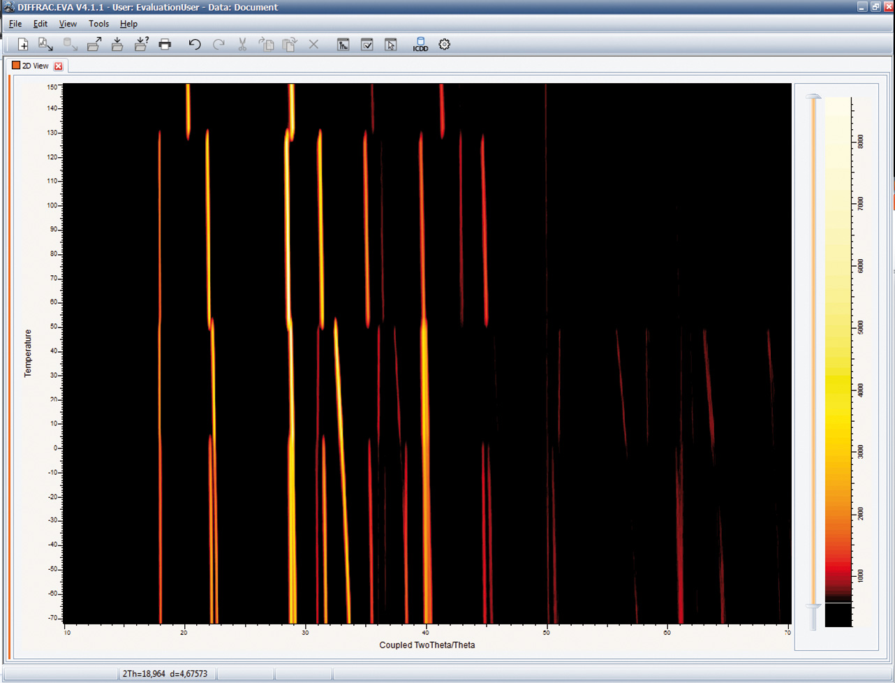 3)可以在DIFFRAC.WIZARD中配置溫度曲線并將其與測(cè)量同步,然后可以在DIFFRAC.EVA中顯示結(jié)果。