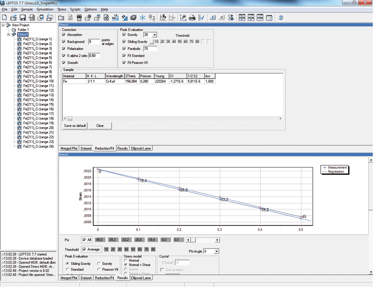 5)在DIFFRAC.LEPTOS中分析鋼部件的殘余應(yīng)力:通過(guò)sin2psi方法,使用Cr輻射測(cè)量得到。