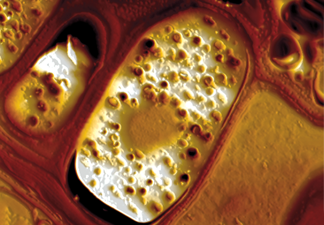3)Dimension Edge高性能AFM能夠觀察小麥谷物成分中生物聚合物的納米級結(jié)構(gòu),從而更好地了解其結(jié)構(gòu)與谷物產(chǎn)品宏觀特性的關(guān)系。圖像大小90 um.