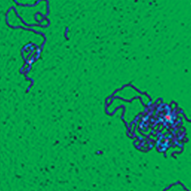 3)空氣中DNA的輕敲模式閉環(huán)圖像。掃描范圍: 2um,掃描速率: 4.88Hz。