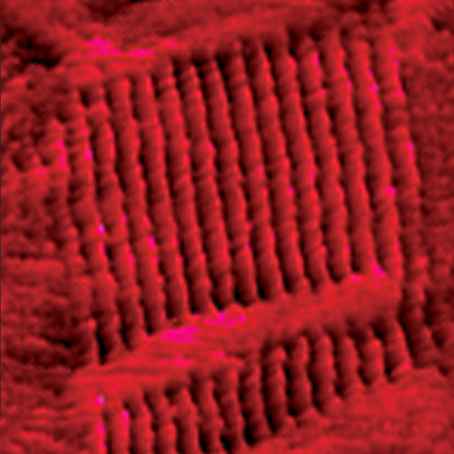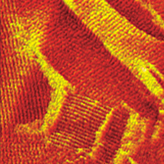 8)HOPG上C36H74烷的閉環(huán)、高分辨率AFM圖像。掃描范圍: 100nm