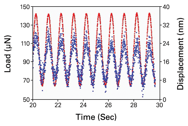 2) 納米動(dòng)力學(xué)模式------施加振蕩力,持續(xù)測(cè)量粘彈性和疲勞特性,作為接觸深度、頻率和時(shí)間的函數(shù)