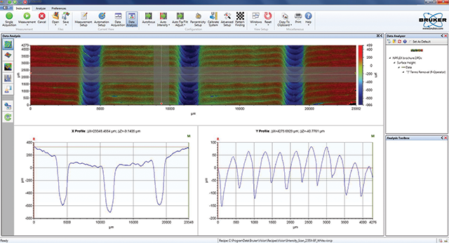 布魯克是三維表面計量與檢測的全球領(lǐng)導(dǎo)者,提供快速快速的非接觸式三維輪廓表征方案。樣品小至顯微視場下的MEMS結(jié)構(gòu),大到完整的機械引擎。我們的光學(xué)輪廓儀基于Wyko®專有核心技術(shù),歷經(jīng)十代積累,提供了其他測量系統(tǒng)無法企及的高精度與穩(wěn)定性。在今日,這些正成為精密表面三維測量的主流應(yīng)用場景。